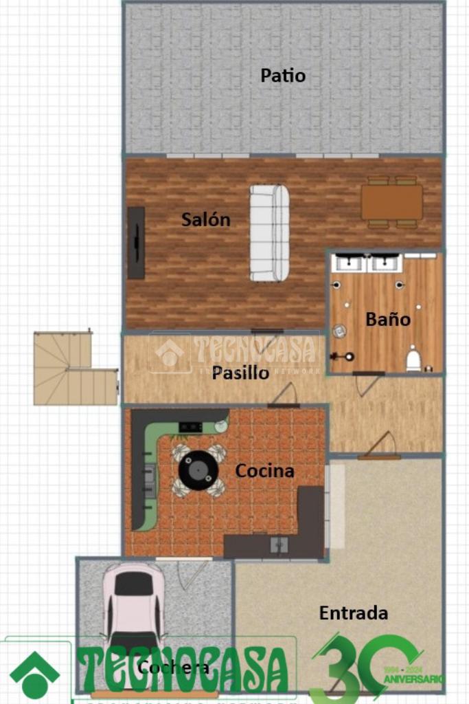 En la planta baja, podemos encontrar un espacioso y luminoso salón, el cual da paso a un, también, espacioso patio donde poder disfrutar de momentos familiares y de tranquilidad. Además de esto, cuenta también con un aseo, una amplia cocina y garaje