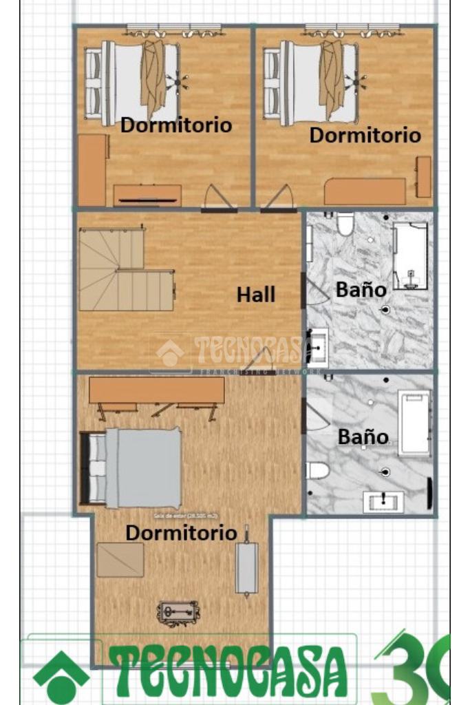 En la primera planta, encontramos un baño y 3 dormitorios. 2 de ellos son individuales y el otro de matrimonio, este último, cuenta también con baño propio. Cada una de las habitaciones cuenta con luz natural y armarios empotrados